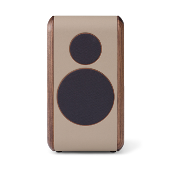 Pár aktivních stereofonních reproduktorů z kolekce eight (Truune) se studiovou kvalitou zvuku, ořechové dřevo, velbloudí kůže, cena 115 775 Kč, www.truune.com