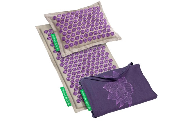 PRANAMAT ECO je akupresurní podložka vyrobená eticky v EU za pomoci výhradně obnovitelných zdrojů energie. Výplň je z přírodního kokosového vlákna a čalounění z čistého lnu, obarvené speciální přírodní a hypoalergenní barvou. Lotosové květy jsou vyrobeny z plastu HIPS, používaného ve zdravotnictví. Speciální technologie výrobci umožňuje připevnění lotosových květů pouhým tlakem bez nutnosti použití lepidla nebo acetonu. Cena od 5 200 Kč, WWW.PRANAMAT.CZ
