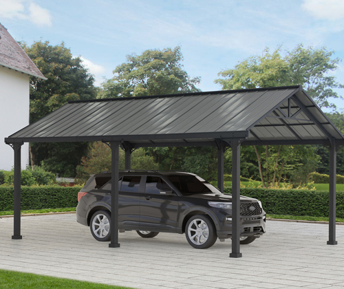 Pokud nemáte prostor nebo chuť stavět klasické garážové stání, tento přístřešek Carport EIGER o rozměru 610 × 367 cm vám ho může úspěšně nahradit. Je navržený pro jedno auto a zaujme jednoduchým, moderním designem i kvalitním zpracováním. Dešťová voda se díky sklonu střechy nebude hromadit na povrchu střechy, ale bude stékat dešťovým okapem. Konstrukce přístřešku je vyrobena z oceli odolné proti rezavění a povrchově upravená práškovým nátěrem, což jí zajistí dlouhou životnost a minimální údržbu.