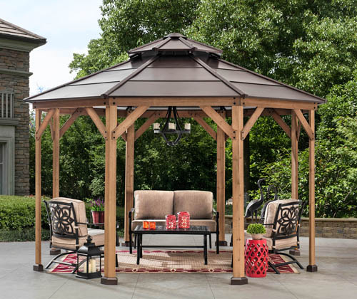 Připravte si unikátní prostor ve vaší zahradě s naším elegantním zahradním altánem Gazebo RAPI z cedrového dřeva. Jeho kvalitní valbová střecha z hnědé oceli a polykarbonátu vás spolehlivě ochrání před slunečními paprsky i deštěm a zároveň umožní pronikání přirozeného světla díky vestavěnému světlíku. Altán o rozměrech 273 × 273 cm kombinuje přírodní krásu cedrového dřeva s moderním designem a poskytuje příjemný prostor pro relaxaci nebo setkávání s rodinou a přáteli. Vestavěné dvojité kolejnice umožňují snadné připevnění sítě proti komárům nebo závěsu pro větší soukromí.