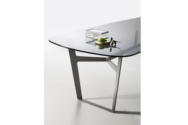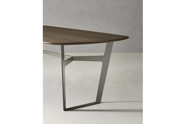 Základna stolu Obi se svým dynamickým designem je z lakovaného kovu a může podporovat různé desky, oválné i obdélníkové, dostupné v texturovaném provedení, dřevě, skle nebo různých keramických povrchových úpravách: každá deska je vyrobena jinak, v závislosti na variantě.