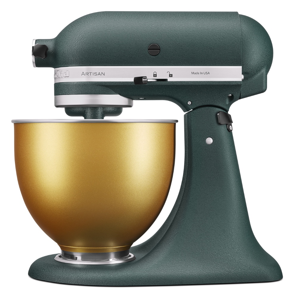 ARTISAN 5KSM156 (KITCHENAID) Adept na ikonu, nebo žijící ikona? V případě kuchyňského robotu KitchenAid to je přinejmenším zapeklitá otázka. Jeho první předchůdce vzniknul už v roce 1908 a úspěšně sloužil profesionálním pekařům. Jeho nástupce pro domácí použití to ale neměl zdaleka tak jednoduché. Prosadil se až v roce 1927 pod označením Model G a zabydlel se i v domácnostech hvězd – jeden takový měl i Henry Ford. Jako zlomový se však ukázal až rok 1936, kdy mu designér Egmont Arens vtiskl tak nadčasový design, že se jím s radostí kocháme dodnes. Dnešní KitchenAid Artisan dělá svým předkům čest. Kromě atraktivní podoby v nepřeberném množství barevných provedení k tomu využívá i planetární systém míchání. Kuchyňský robot Artisan 5KSM156 (KitchenAid), limitovaná edice v lahvově zelené barvě s nerezovou mísou zdobenou zlatou barvou, cena 18 190 Kč, WWW.POTTENPANNEN.CZ