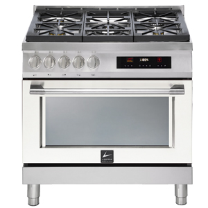 Foto: LofraVolně stojící plynový sporák (Lofra), perleťově bílé provedení, pět hořáků, elektrická trouba, energetická třída A, cena 92 990 Kč → www.elettromec.cz
