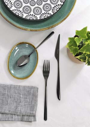 Foto: PintinoxSada příborů Florence Night (Pintinox) o 24 kusech, vyrobená z nerezové oceli s PVD povrchovou úpravou, vhodné do myčky, cena 3 319 Kč → www.ignazrosler.cz