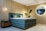 Ručně šitá boxspringová postel ze 100% přírodních materiálů (Bernuss), vyrobená na míru zákazníkovi, cena na dotaz → www.bernuss.com