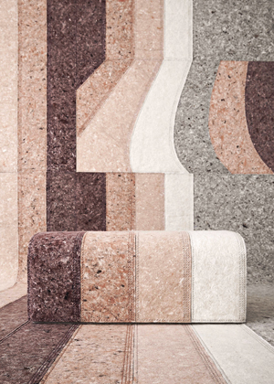 Sedací modul z kolekce Nuances Burgundy (GAN), design Patricia Urquiola, materiál recyklovaná vlna zpracovaná plstěním a připomínající strukturu kamene, cena od 32 090 Kč, www.stockist.cz