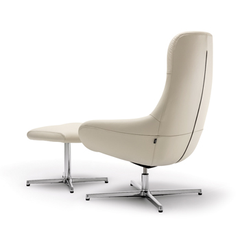 Otočné křeslo 485 (hülsta), funkce otáčení i houpání, možnost doplnění o taburet a krční polštář, textilní či kožený potah, cena od 61 900 Kč, www.nabytekhulsta.cz