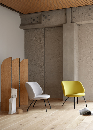 Redesignované lounge křeslo Shrimp (COR), design Jehs + Laub, dřevěná skořepina a mohutná výplň potažená textilem či kůží, cena na dotaz, www.stopka.cz
