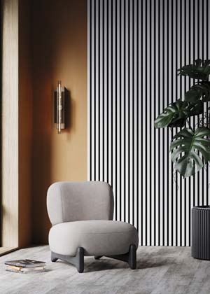 Designové lamelové obklady Walls (Floor Forever), 12 dekorů, lamely vyrobeny z MDF, lepené na kvalitním filcu, k dostání ve dvou formátech, cena na dotaz → www.floorforever.cz