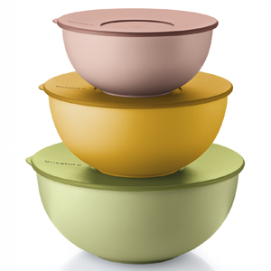 Everywhere Bio (Guzzini), sada tří misek z recyklovatelného bioplastu, cena 929 Kč → www.ignazrosler.cz