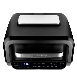 Horkovzdušný gril Catler HG 410 umožňuje připravit pokrmy pomocí horkovzdušného pečení, a nabídne tak opravdu široké využití. Vedle funkce horkovzdušného fritování s minimem tuku zvládne i pečení masa, zeleniny či pečiva, a navíc se dá využít také jako sušička potravin. Předností tohoto spotřebiče je různorodost, rychlost přípravy, úspora času a energie, pozoruhodný objem a nízká hmotnost, která umožňuje snadné přemisťování. Oblíbíte si jej při rozpékání baget nebo toustů na snídani, k obědu vám umožní rychle připravit grilovanou rybu nebo steak, odpoledne můžete upéct buchtu nebo závin a k večeři třeba pekáč francouzských brambor nebo zapečených těstovin.