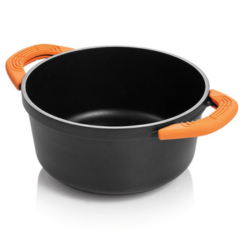 Kastrol z kolekce SmartCLICK (Tescoma), odolný kov s antiadhezním povlakem, odnímatelné silikonové úchyty, Ø 28 cm, objem 6,5 l, cena 1 999 Kč, www.tescoma.cz
