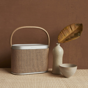 Foto: Bang & OlufsenPřenosný reproduktor Beosound A5 (Bang & Olufsen), 360stupňový rozptyl, hliník a dřevo, rozměry 13 × 28,5 × 18,7 cm, cena od 34 990 Kč → www.bostore.cz