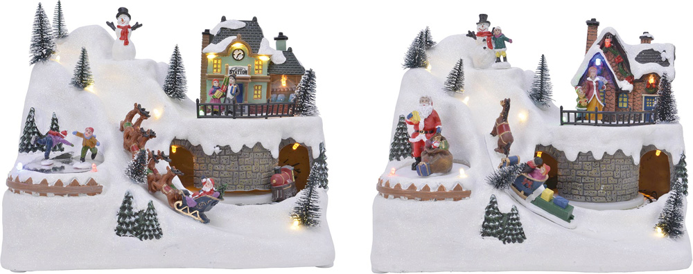 Vánoční vesničky se v našich končinách těší stále větší popularitě. Milovníky těchto výjevů potěší pokračující trend. Letos je téma vesniček s dětskou hravostí doplněno o ozdoby v modré, sněhově bílé a hnědé barvě. Dominuje venkovní zimní krajina obklopující vesničku.
