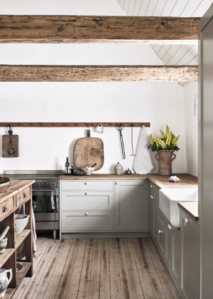 Venkovské kuchyně byly do nedávna synonymem kuchyní našich babiček. Klasické kuchyňské kredence s prosklenými dvířky, za nimi zastrkané pohledy a blahopřání. V šuplíčkách malé poklady: gumičky, sirky, provázky, papírky s narychlo psanými nákupními seznamy a recepty. Mezi vyskládaným nádobím schovaného vždycky něco na zub, slepené fialky nebo kus čokolády na vaření. Babičkovské kuchyně mají svou poetiku, ale přiznejme si, že ty dnešní venkovské kuchyně jsou jim na hony vzdálené. A jsou také mnohem rozmanitější. Můžete sáhnout do staré známé klasiky profilovaných rámečkových dvířek se zdobnými detaily porcelánových úchytek, ručně malovaných obkladů, sukýnkových stínítek… Nebo se poohlédnout ve střízlivější, poměrně nové kategorii kuchyní v Modern Country stylu. Mistrovské prototypy těchto kuchyní najdete zejména u severských truhlářských firem, které je vyrábějí se stále velkým podílem ruční práce. Jejich kuchyně bývají veskrze minimalistické, zato s důrazem na ušlechtilost dřeva a dalších přírodních materiálů a na detaily jejich řemeslného zpracování.