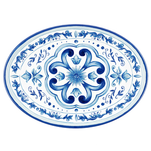 Blues Collection (Guzzini), velký servírovací talíř, materiál melamin, rozměry 50 × 36 cm, cena 589 Kč → www.ignazrosler.cz