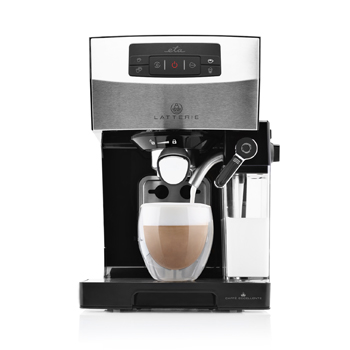 Poloautomatické pákové espresso Latterie 4180 90000 (ETA), nerez, zásobník na mléko, tlak 15 barů, objem nádoby na, vodu 1,4 l, i pro oba dva šálky, cena 3 999 Kč www.eta.cz