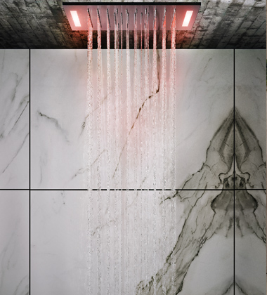 tvary a kvalitní nerezová ocel. Nabízí různé tvary a funkce, včetně tropického deště, kaskády, mlhy a chromoterapie pro dokonalý zážitek → www.luxusni-koupelny-praha.cz