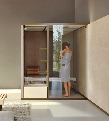 BodyLove H (Effe) je modulární hammam navržený Rodolfo Dordonim a Michele Angelini. Kompaktní a elegantní, perfektně zapadá do interiéru. Využívá technologii Nuvola Smart Power pro optimální páru a materiály, jako je porcelán a Corian, mají vysokou kvalitu → www.effe.it
