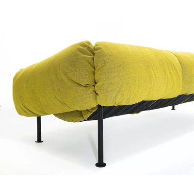 Rám sedaček je vyroben z odolné oceli, která je k dispozici v barvách oranžová, amarantová, travní zelená a černá. Pro podporu polštářů je konstrukce doplněna pevnými polyesterovými popruhy v antracitovém odstínu. Sedáky, opěrky a područky jsou vyplněny kombinací polyuretanu a regenerovaných i regenerovatelných polyesterových kuliček, což zajišťuje jejich vysokou trvanlivost a optimální komfort.