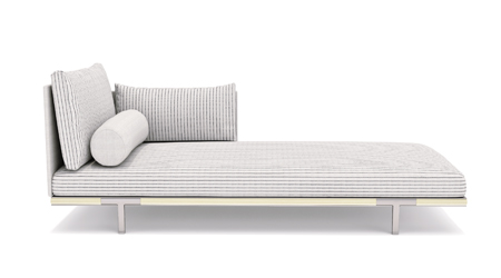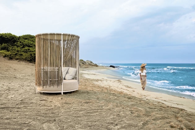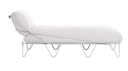 Denní lůžko Oasi (Roberti Rattan), design Technical Emotions, lakovaná ocel, bílá nebo černá, snímatelná outdoorová textilie, cena 326 000 Kč → www.puntodesign.cz