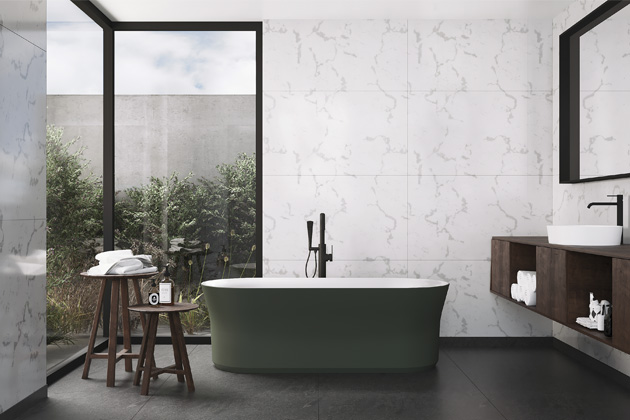 Zatímco září přináší svěží start po letních dnech, vaší koupelně by mohla prospět pořádná dávka vegetační bdělosti. Správný energizující impuls jí dodá zelená v odstínu mačča.