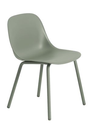 Foto: MuutoŽidle Fiber Armchair Tube Base (Muuto), design Iskos-Berlin, kov, bio kompozitní materiál s dřevěnými vlákny, odstín dusty green, cena 7 725 Kč → www.designville.cz