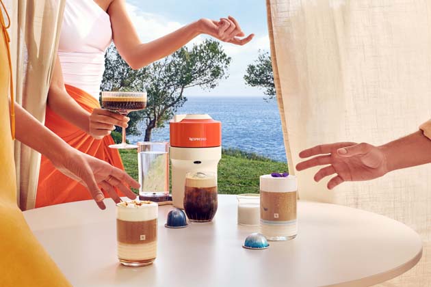Designový kávovar Vertuo Pop Pantone (Nespresso) v retro designu, inspirovaný atmosférou středomořské riviéry, cena 3 390 Kč → www.nespresso.cz