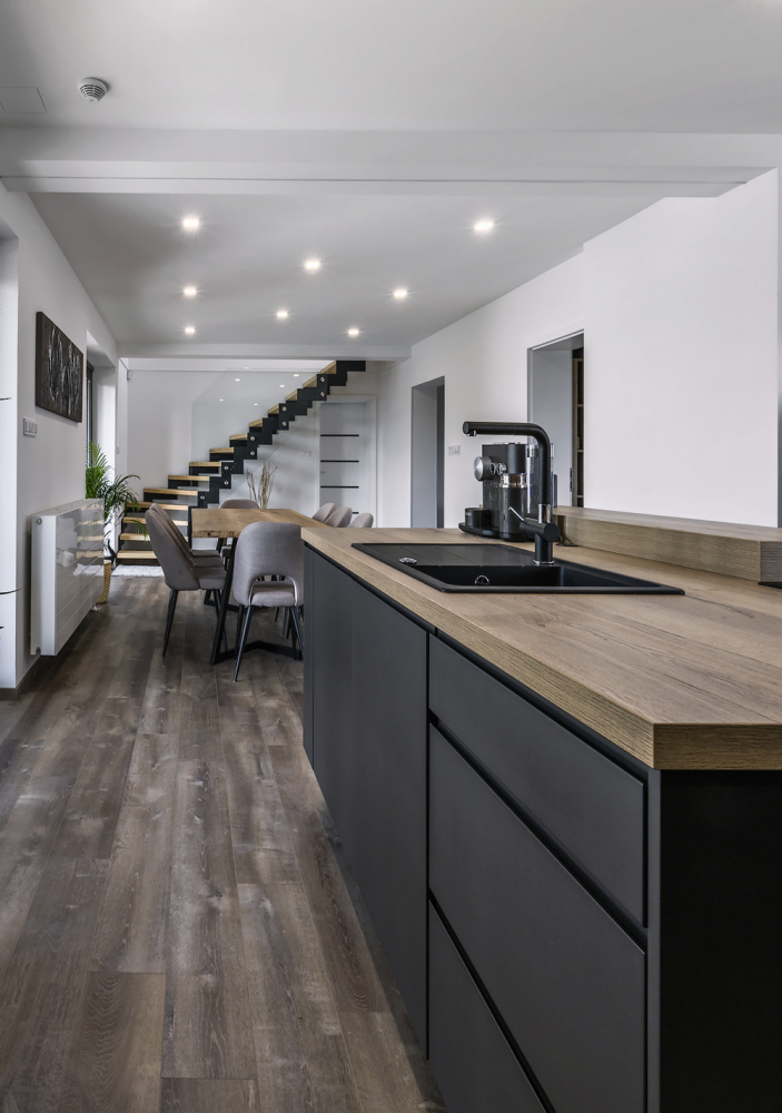 Brzy poté, co se tmavší barvy zabydlely v interiérech, přišla ke slovu i černá. K oblibě jí pomohl hlavně nový trend matných povrchů.