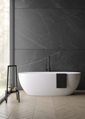 Foto: 41zero42Nok (41zero42), dlažba se vzorem Snake Ebony, formát 120 × 120 cm, cena 2 897 Kč/m2→ www.perfecto.cz