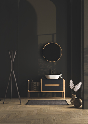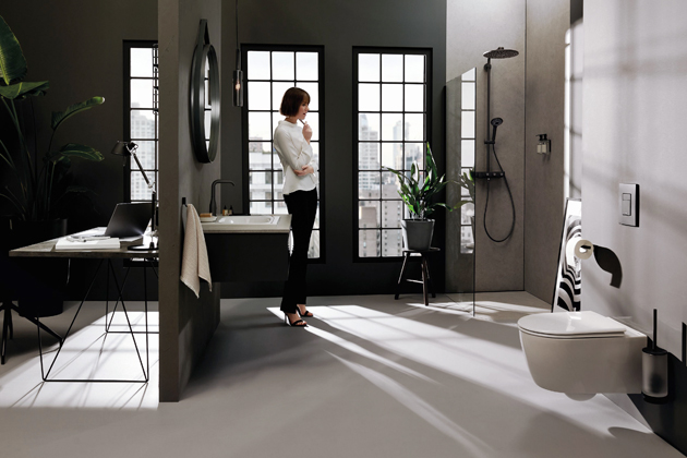 Phantom Black (Grohe), kolekce, zahrnující vše od baterií, termostatických baterií a sprch až po splachovací tlačítka a doplňky → www.groh