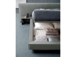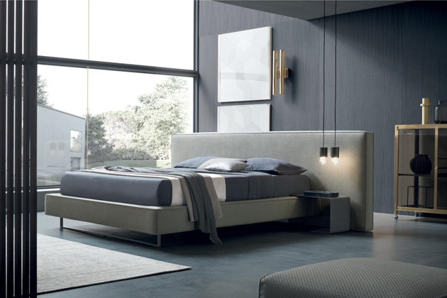 Minimalistické linie a velké objemy této postele skutečně vyjadřují koncepci návrhu. Z každé strany je kus zakřiveného kovu, který slouží jako praktický noční stolek, aby bylo vše po ruce. Tyto noční stolky se dají dát i pod nohy a popřípadě s polštářkem (polstrem) nahoře.