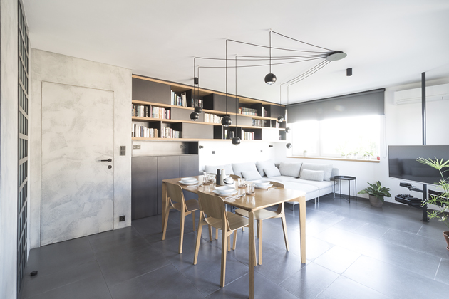 Skříně z tahokovu, příčka ze dvou vrstev bezpečnostního skla, svítidlo evokující pavoučí končetiny, ale i důmyslně ukrytý, a přitom naplno přiznaný kočičí ráj… to vše najdeme v bytě, který nedávno prošel kompletní rekonstrukcí. I přes dominanci chladnějších tónů a materiálů se byt stal útulným místem, kde by se mohlo zdát, že pomyslnou hlavou rodiny je čtyřnohý obyvatel bytu s hebkou srstí a ostrými drápky.