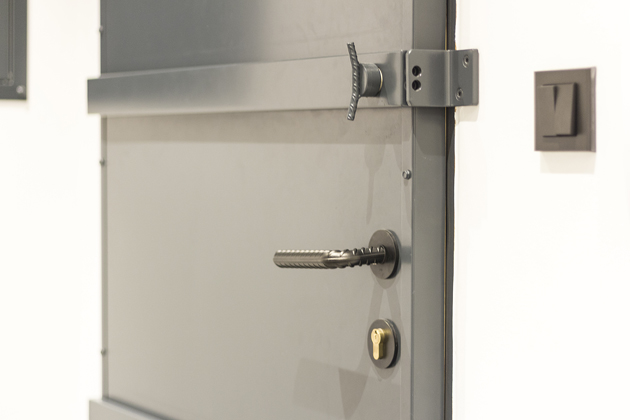 V chodbě i v prostoru obývacího pokoje spojeného s kuchyní je položena velkoformátová šedá dlažba, která vytváří plynulý přechod mezi těmito místnostmi. Odděleny jsou dveřmi se skrytými zárubněmi, jejichž design je stený jako vzor bílé stěny s betonovou stěrkou. Tím jsou tyto dveře opticky maskovány a na první pohled je odhaluje až kontrastní matná černá klika Morgan s povrchem z titanu od M&T. „Tento materiál nejenže splňuje designové požadavky, ale je i vysoce odolný a vydrží beze změny svého povrchu sloužit dlouhá léta,“ říká Roman Ulich, hlavní designér společnosti M&T, jediného českého výrobce designového dveřního kování a pokračuje: „Navíc se tvar kliky MORGAN směrem ke středu dveří mírně zužuje, což zajišťuje ergonomické pohodlí při jejím užívání.“