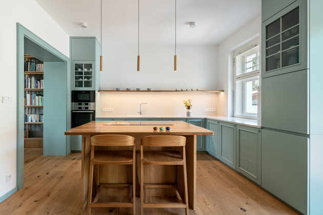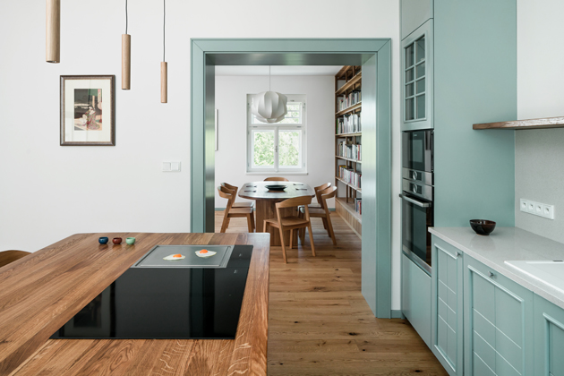 Výrazná vila na předměstí Prahy kombinuje historický šarm s moderními trendy. Každý detail interiéru, od barevných portálů až po designový nábytek a dveřní kování z českých dílen, je pečlivě sladěn. Renovace zdůrazňuje původní charakter domu, zatímco zahrnuje současné prvky pro moderní pohodlí.