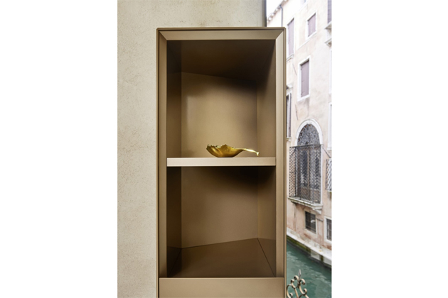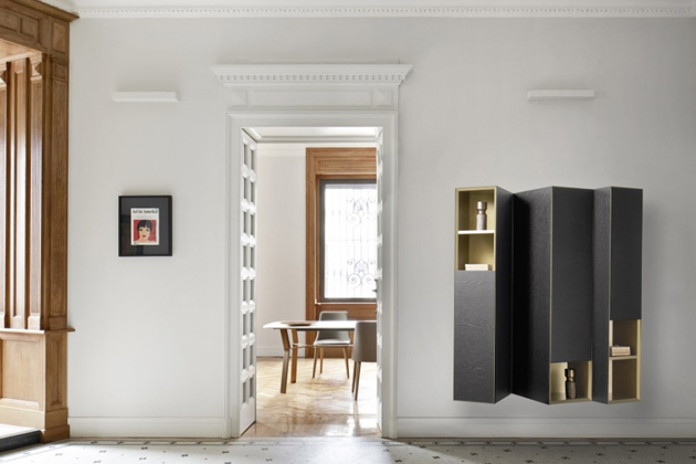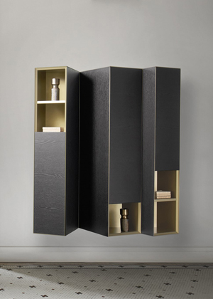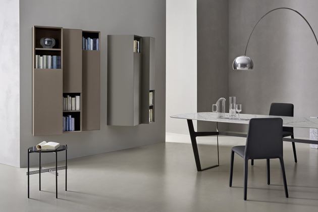 Úložné jednotky Domino Clino, vyznačující se šikmým úhlem, který vytváří originální vizuální efekt, lze použít jako jednotlivé nebo modulární prvky podle potřeby, a to díky možnosti jejich montáže v obou směrech. Korpus skříňky je z lamina v četných povrchových úpravách i jejich kombinacích. Čelní dvířka skrývají 2 až 4 police a jsou modulární v šíři 30 – 37,5 cm, vždy v kombinaci s alespoň jednou otevřenou policí.