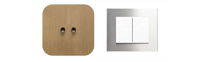 Kovové vypínače a zásuvky jsou aktuálně velice trendy záležitostí a vyjímají se zejména v moderních a industriálně laděných interiérech. Pro vypínače a zásuvky jsou dostupná provedení v hliníku a nerezu. Například hliníkové rámečky v různých variantách kovových odstínů, včetně netradičního cortenu či více druhů patiny, nabízí kolekce VECTIS. Její panely lze ale také lakovat odstíny NCS a RAL.