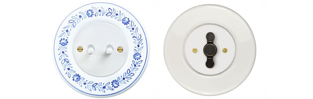 Keramické materiály zaujmou zejména příznivce vintage stylu. Díky nim vrátíme interiér v čase a naplníme ho nostalgickou atmosféru. Tu doprovodí i keramické vypínače a zásuvky z kolekce RETRO, a to v klasickém černém a bílém provedení, anebo s ručně malovanými motivy s folklorně-rustikálními vzory na bílém podkladu.