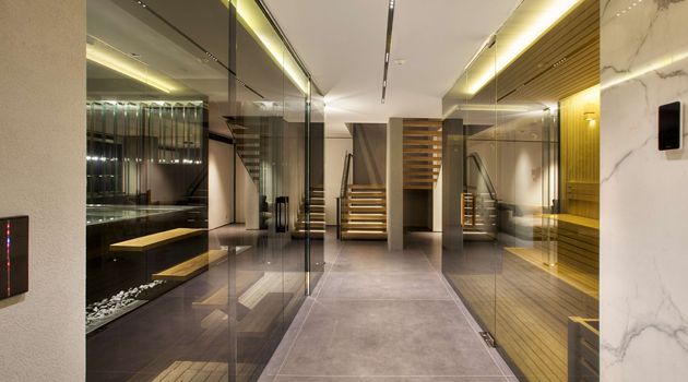 S ohledem na životní styl Kromě přízemí a prvního patra stavba disponuje také podzemním obytným podlažím, které téměř celé slouží k relaxačním účelům. Nachází se zde lázeňská část sestávající z tureckých lázní, sauny, masážního bazénu, šokové sprchy, relaxační a barové zóny. A pro další volnočasové aktivity nechybí soukromý kinosál. K odpočinku pak vyzývá také k domu přilehlá zahrada s prostorným bazénem, který se zvedá pouze několik centimetrů nad úroveň terénu. V zahradní části nechybí ani zahradní domek s grilem a posezením.