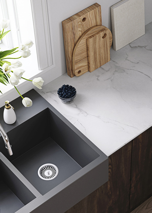 Nárokům na subtilní a minimalistické provedení skvěle vyhovují desky z kompaktního laminátu a z kaleného skla, které jsou navzdory představám o zranitelnosti tohoto materiálu velice pevné a odolné. Dalším nově využívaným materiálem s hladkým nebo strukturovaným povrchem je keramika. Zajímavou možnost představují pracovní desky zhotovené ze stejného materiálu jako dřez, který je jejich pevnou součástí bez viditelných spojů.