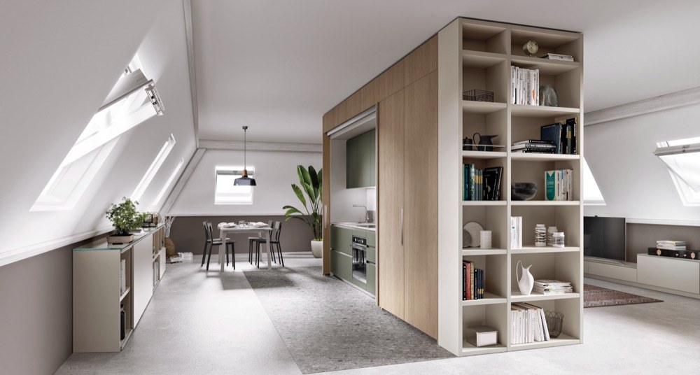 Kompaktní řešení nemá tak pevné obrysy jako interiér přímočaře rozdělený pevnými stěnami a o to větší důslednost vyžaduje. Tam, kde se stírají hranice mezi denní a noční částí, musíme vzít v úvahu dělení na tři základní funkční zóny. První je komunikační, která prochází celým obytným prostorem a představuje tak základní osu dispozice. Druhá je tzv. zóna činností, zahrnující místa, a tedy i nábytek včetně doplňků pro různé domácí činnosti a třetí je zóna úložná, určená pro skladování. Platí, že v každém interiéru je právě toto pověstným základem, na kterém můžeme stavět...