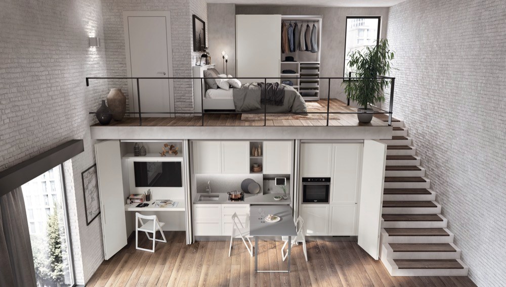 Skvělým řešením pro malé byty jsou multifunkční boxy umístěné do středu prostoru. Umožňují využít všechny své čtyři stěny a zároveň částečně nahradí obvyklejší zdi. Z jedné strany tak mohou sloužit jako plnohodnotně vybavená kuchyň vymezující také prostor pro jídelní stůl a z té druhé ukrývat třeba šatní skříně určující půdorys ložnice. Dostupné jsou již prefabrikované kusy, které výrobce doladí podle požadavků klienta, ale časté jsou také boxy kompletně navržené architektem ± ty v sobě leckdy ukrývají další místnost (nejčastěji koupelnu) a tam, kde to výška stropu dovoluje, poskytují patro na spaní.