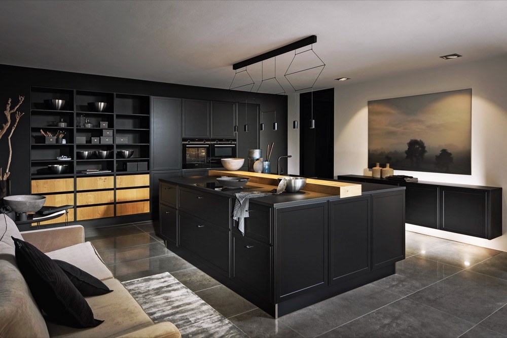 Matně černé detaily jako například baterie nebo úchytky kuchyňských skříněk jsou jednoznačně trendy. V černé kuchyni budou nenápadné, v bílé minimalistické a ostudu neudělají ani ve společnosti jiných dekorů.