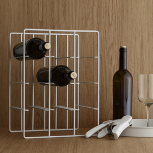 Foto: BlomusPilare (Blomus), stojan na víno z práškově lakované oceli, pojme až 12 lahví, cena 2 421 Kč → www.blomus.cz