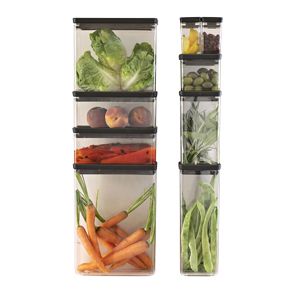 Foto: BrabantiaSquare (Brabantia), sada stohovatelných dóz na suché potraviny, materiál transparentní plast, cena 890 Kč → www.brabantia-shop.cz