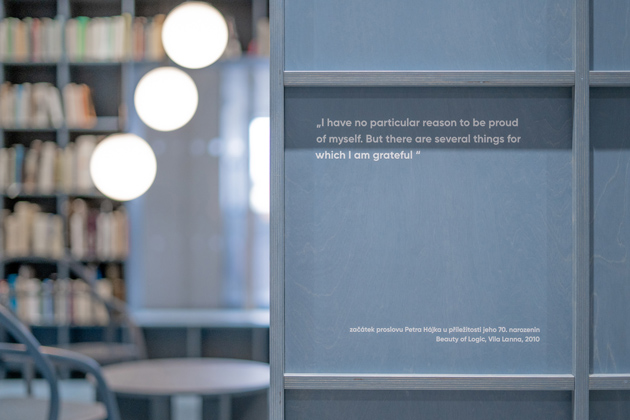 „Návštěvník postupně sbírá úlomky osobnosti Petra Hájka. Nejdříve díky jeho myšlenkám a citátům, které se nacházejí na vnější straně knihovny. Po vstupu se může zahloubit do jeho vnímání světa skrze knihy, které ve svém životě napsal či studoval,“ dodává Tereza Kabelková.