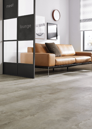 Vinylová podlaha FLOOR FOREVER VINYL, kolekce Design Stone 0,55, dekor 9977 Industrie Concrete Cream, lepený způsob pokládky, rozměr lamel 2,5 × 457,2 × 914,4 mm, cena 903 Kč/m² → www.floorforever.cz
