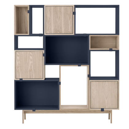 Modulární knihovna Stacked (Muuto), design Julien de Smedt, díky jednoduchému systému klipů a boxů se může potenciálně replikovat donekonečna, provedení lakovaná MDF deska a překližka potažená dubovou dýhou, cena od 3 750 Kč