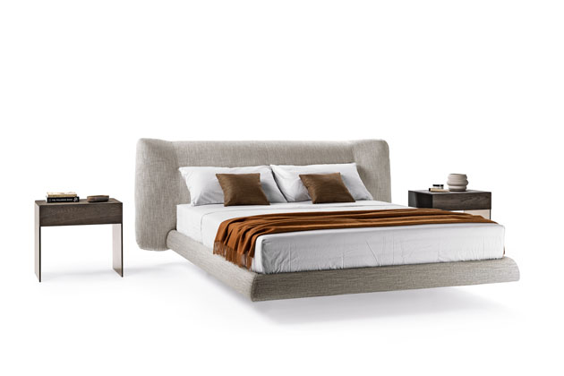 Postel Ema (Natuzzi Italia), design Patrick Norguet, pro matraci 160 × 200 cm v kůži cena od 142 380 Kč, v textilii od 115 890 Kč, www.natuzzi.cz