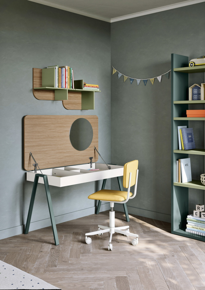 Dětský pokoj školáka by neměl být ochuzen o pracovní stůl s židlí, kde možná nerad, ale nevyhnutelně stráví dost času.